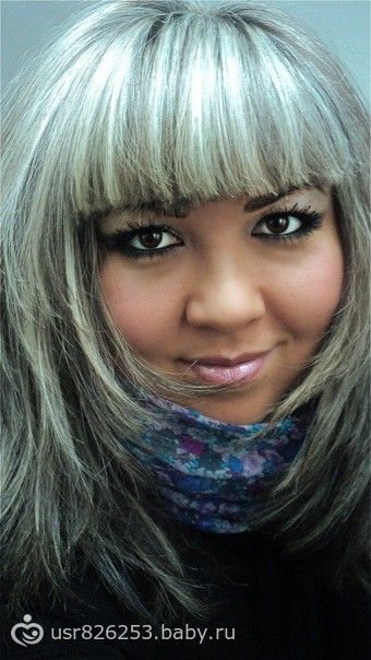 здесь мелировка, тоник пепельного цвета и челка