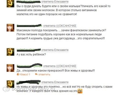 она там дальше продолжает такую ересь писать, что мы подвергаем своих детей риску заразиться инфекцией, так как ГМ не стерильно и у нас в организхме куча инфекций, и в молоке они есть всегда, что мы мамашки с дойками просто экономим на смесях, а она покупала дорогую смесь, что б не рисковать и не кормить инфецированным молоком. в общем такая ересь!!!!!