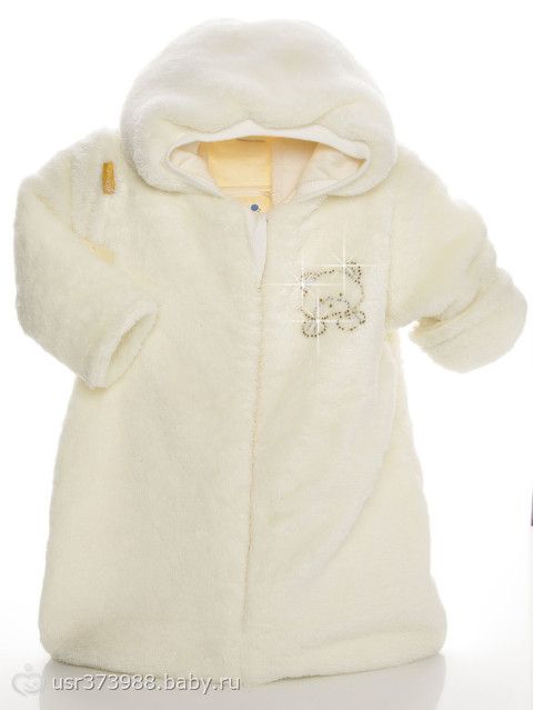 был меховой конверт без ручек — нам было неудобно, потом стали ложить в комбинезон с ногами и руками, стало удобнее манипулировать с ребенком