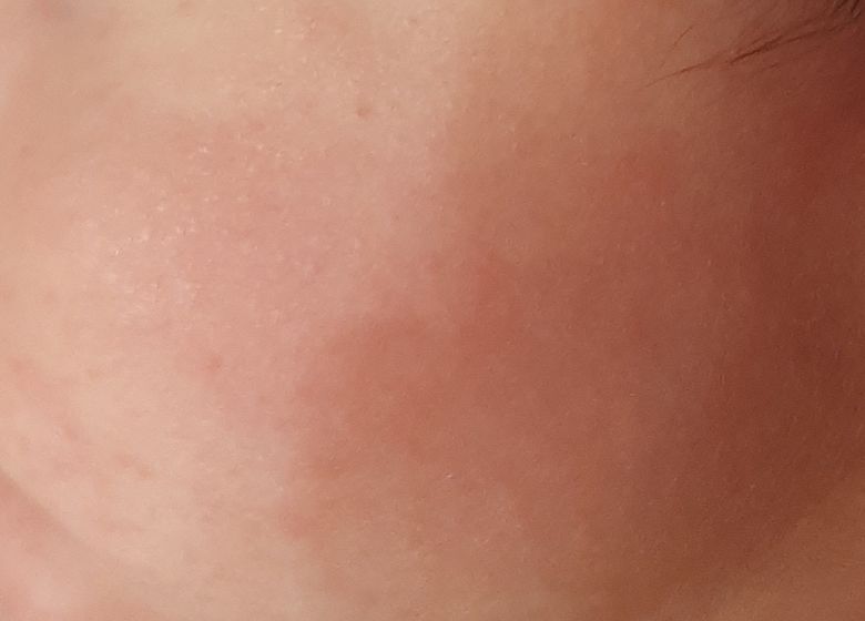 Мамы всем доброго дня?Не могу понять что это, вот как несколько дней периодически высыпают красные пятна, на диете не сижу уже как два месяца, ем все без фанатизма конечно, может на нг съела чтото нето и до сих пор пятна то исчезают то появляются опять, похоже на аллергию? к врачу 9го только, сыпь только на щечках и немного на лбу, фото?