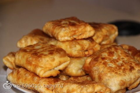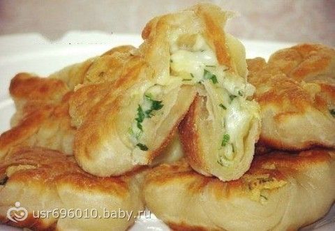 Кефирные конвертики с сыром Ингредиенты: Тесто: -1 стак. кефира. -2 стакана муки (соль, сахар по вкусу, совсем немного) Приготовление: Замесить упругое тесто) Поставить на 40 мин. в тепло. Затем тесто разделить на две части. Раскатать, смазать сливочным маслом, свернуть в рулет и убрать на 30 мин. в холодильник. Затем отрезать кусочки, делать из них квадратики, на середину начинку, завернуть конвертиком и на сковородку. Начинка: -Тертый сыр, -зелень, -сырое яйцо.