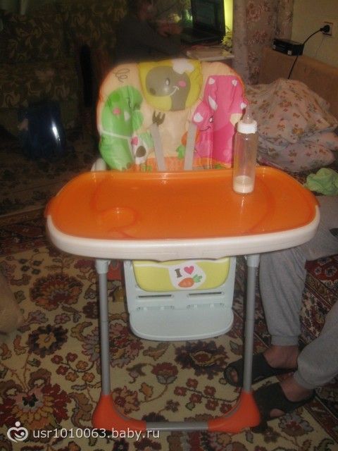 Вот такой стульчик для кормления купили мелкому. Всем рекомендую, очень удобно, просто царский трон! Уже сейчас можно его туда класть и ребенок всегда со мной, на кухне и в комнате, и ему хороший обзор всего происходящего.