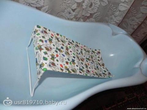 поддерживали руками… есть круг, но она в нём не любит купаться… я бы сразу коврик в ванночку против скольжения взяла — удобная вещь и наверное губку, как на третьем фото… горку пластиковую не стала бы брать — читала, что малышу может натирать...