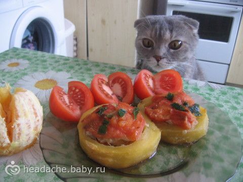 кошка не доверяет курице в кабачке =) а я — доверяю, давай рецепт, запишу на будущее. мне чего-то такая идея в голову не пришла, хотя должно быть вкусно. но я тоже запекала курицу с овощами: луком и помидорами.