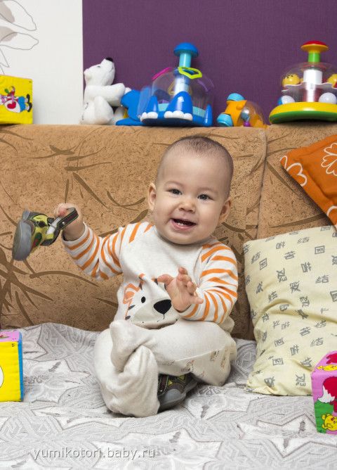 Мише почти 1 год и 2 месяца. Так и не болтает. Но смышленый очень!:) Умнеет не по дням, а по часам:)