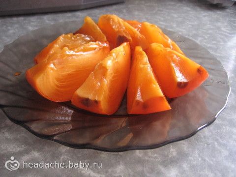 На ужин опять хурма. Такая сладкая, я такой в жизни не ела, думала слипнется))))