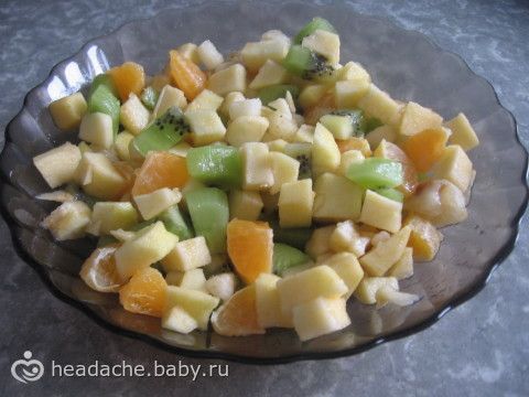 В обед салат (груша, яблоко, киви, мандарин)