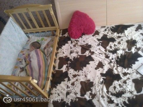 нет, сын спит в своей кроватке, но она пододвинута к нашей.с нами на кровати он ни в какую спать не хочет, к себе ломится… сейчас попробую добавить фото как это все выглядит