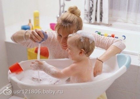 — Температура воды для детей первого полугода жизни 36,5-37 градусов С. Продолжительность купания 5-6 мин. Ванну следует проводить в определенные часы, не раньше чем через час после кормления или за 40 минут до него и за 1 час до сна.