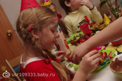 Потом дети слопали целую тарелку клубники с шоколадом… пищали от восторга!