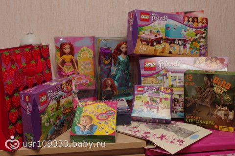 Подарков надарили много!!! Саша ооочень довольна. Серёжа купил точно такой же подарок что и Сашин папашка… придётся менять((( И ещё мальчик один подарил то что у нас есть(отдали мне чек-поменяю)