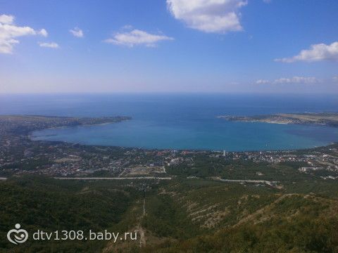 Вот такой вид со смотровой площадки.Море чистое.Тёплое.Только берег не песчаный, а галечный.