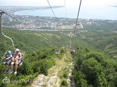 Мы были тоже в Геленджике!!! Оч понравилось!!! Этим летом ещё собираемся!!! На канатной дороге ехать минут 20-25.Ребёнка пристёгивают спец.ремешком, так что с ним прекрасно доедете!!!
