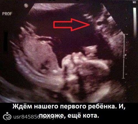 Вижу ребёнка, голова, рука возле головы, пуповина, туловище… Где кот?