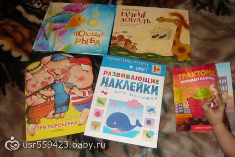 «Три поросенка» пока не читаем, а просто коротко пересказываем Игорю. Книга ему понравилась, листает, смотрит картинки))) В лидерах из посылки книжечка про тракторок. Очень любит любую технику, изображает рукой экскаватор, кран.