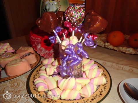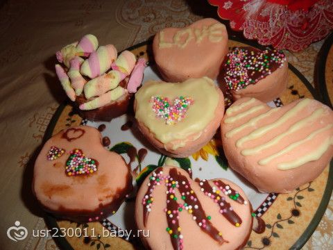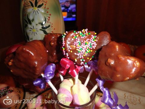 А я никак с ней общий язык найти не могу (с мастикой)… А что под шоколадом в сердечках на палочке?