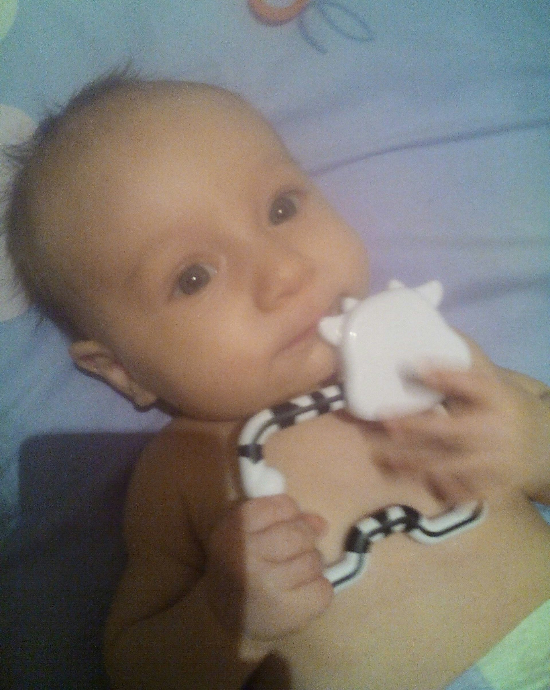 Нашел свои ноги. Лежал в шезлонге и минут 10 дрыгал ими и очень внимательно за этим наблюдал? А до этого увлеченно изучал пеленку, мял и тащил в рот. В общем, так много интересного вокруг, что и игрушки не нужны. ? Нашли, кстати ему боооольшую игрушку, наш старый детский синтезатор. Не могли долго его найти, лежал на шкафу. Так что теперь у юного музыканта появился инструмент побольше. Любит, когда с ним играют в козу, хохочет. Любит ещё игру в ку-ку, когда мама или игрушка прячется за платочком, а потом выглядывает. Хохотун такой, старшие обожают его смешить. И я тоже?