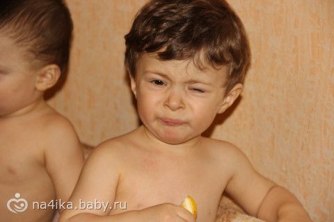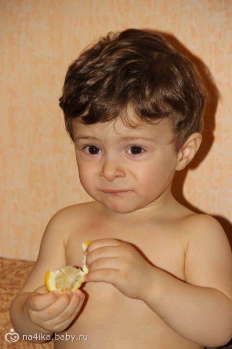 вот так мой младшенький сыночек пробовал лимон, не могли отобрать