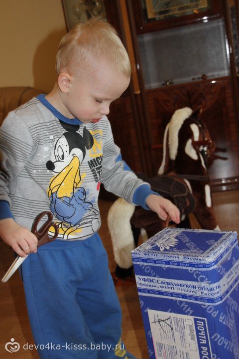 На самом деле посылочка не вчерашняя и даже не этого года, сразу после 3х летия Леши она к нам пришла)) просто фото на флешке болтались у папочки на работе, не могла заставить его ее принести домой, чтобы вам все показать))