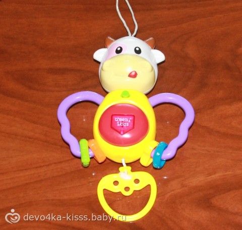 Когда тянешь за колечко снизу, то играет музыка как из музыкальной шкатулки! Не нужно ни батареек, ни аккумуляторов, малыш тянет за кольцо, а музыка звучит.