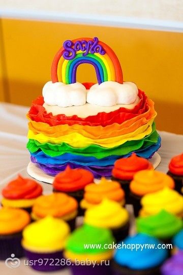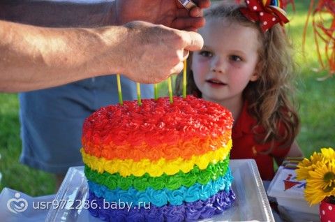 на дочин др у нас будет «радужная вечеринка», а это радуга, шарики и сочные цвета… пока из тортиков нашла такие варианты: