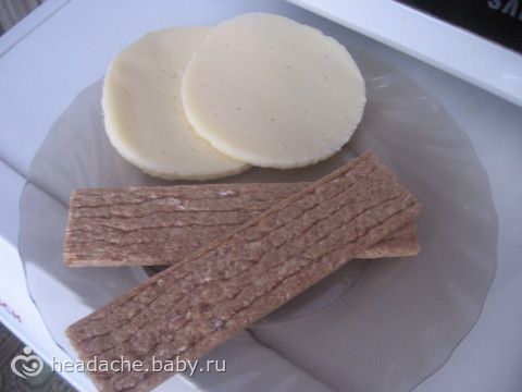 Завтрак. 2 хлебца,2 кругляша сыра.