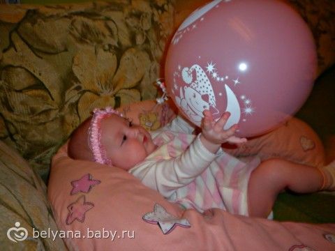 Кукла моя совсем уже большая мадам, садится, ползает, Откликается на имя, в кроватке встаёт на коленки,(пытается встать на ножки у опоры, если поставить стоит держится) Играет с игрушками(есть более любимые, есть которые и даром не надо, любит очень много внимания, чужается, кушает(кабачок, цветную капусту, морковку)брокколи у нас не пошло, завтра начинаем тыкву.
