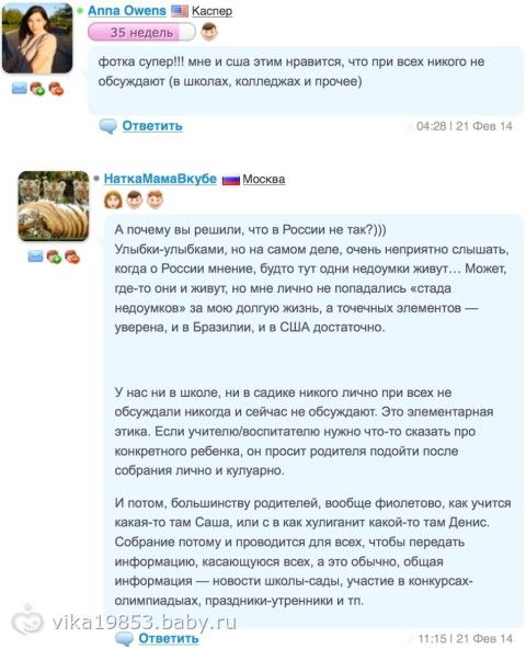 u nas na sobraniiah korektno uchitel govoril o kazhdom, esli uzh chto-to straschnoe, to na edine s roditeliami, v osnovnom sbori na chto-nibud i vobschem o schkole. Schkoli raznie ) Ia v Rossii v 4-h uhilas, odna tolko ne ponravilas.