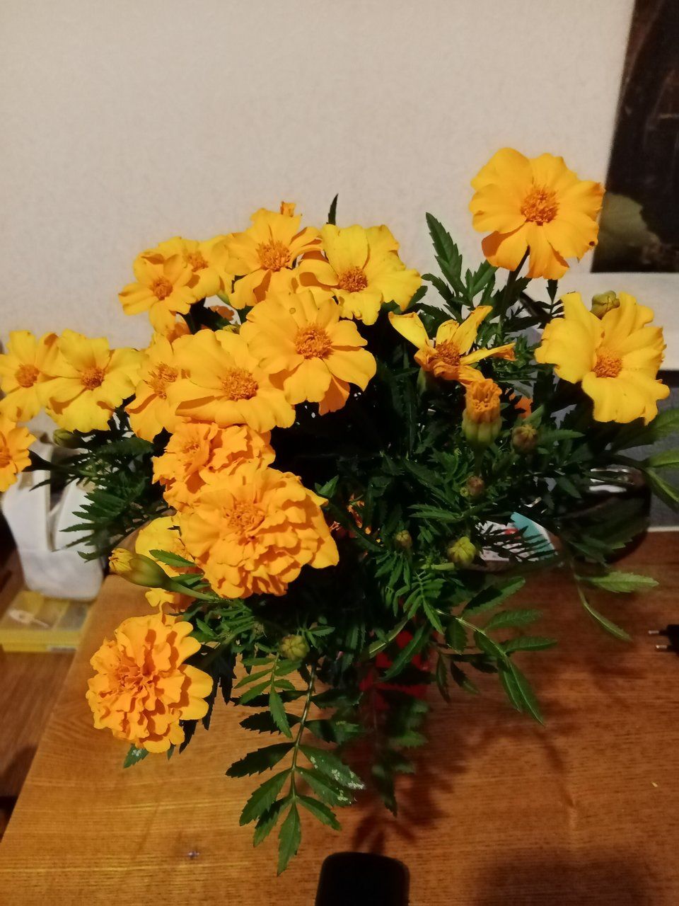 Принесла домой и так захотелось мне вернуться в школу! Я не очень любила учиться, но ходить в школу я любила, скучала по школе на каникулах. Для меня бархатцы пахнут 1-ым сентября! Очень люблю их.