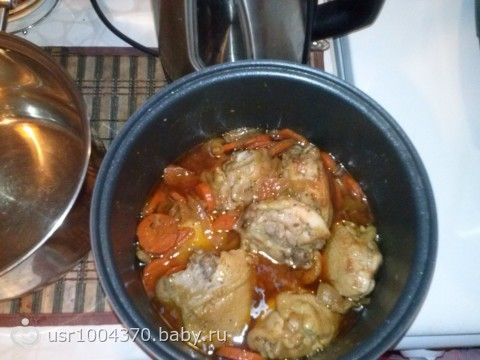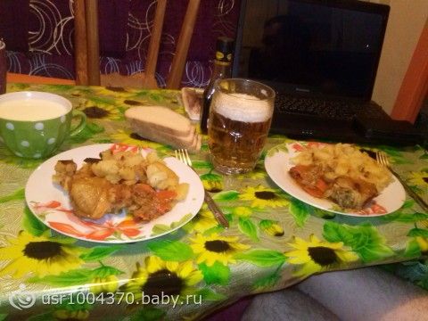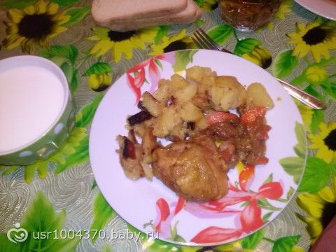 А на ужин приготовила курочку с овощами и тушенную картошечку! все отдельно, в два захода. Вот как раз поели. Ням-ням!!!