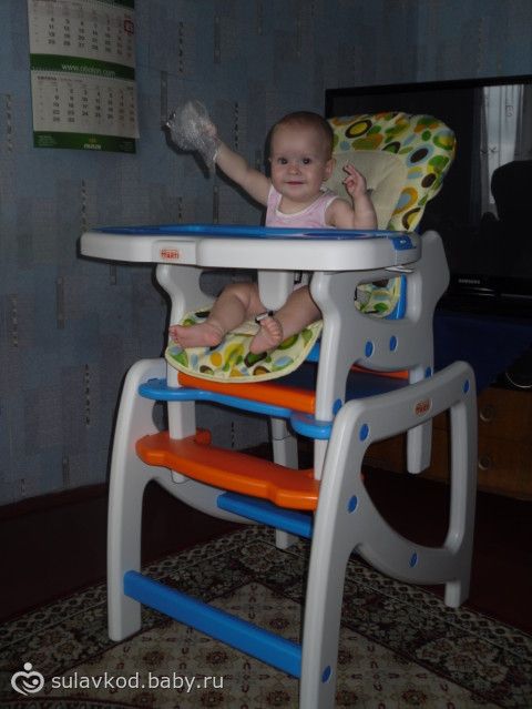 Выбрала именно трансформер, чтоб потом доче было где рисовать, да и покупали после 6-ти месяцев, т.е.не было необходимости, чтоб раскладывался как шезлонг. Как раз подруга продала свой чико Полли(сыночку было 1 год и 3 месяца) т.к. малой не хотел уже в нем сидеть и купила столик и стульчик детский. Вот я и решила убить сразу двух зайцев, чтоб через пол года не заниматься выбором уже другого стульчика.