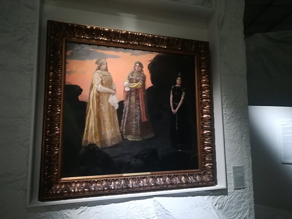 Начали с классики жанра — «Витязь на распутье» Виктора Васнецова. Разумеется, экспонатов из собрания Третьяковки здесь было довольно много.
