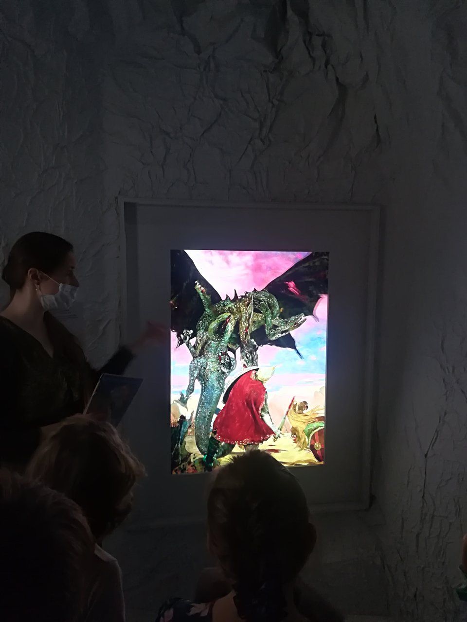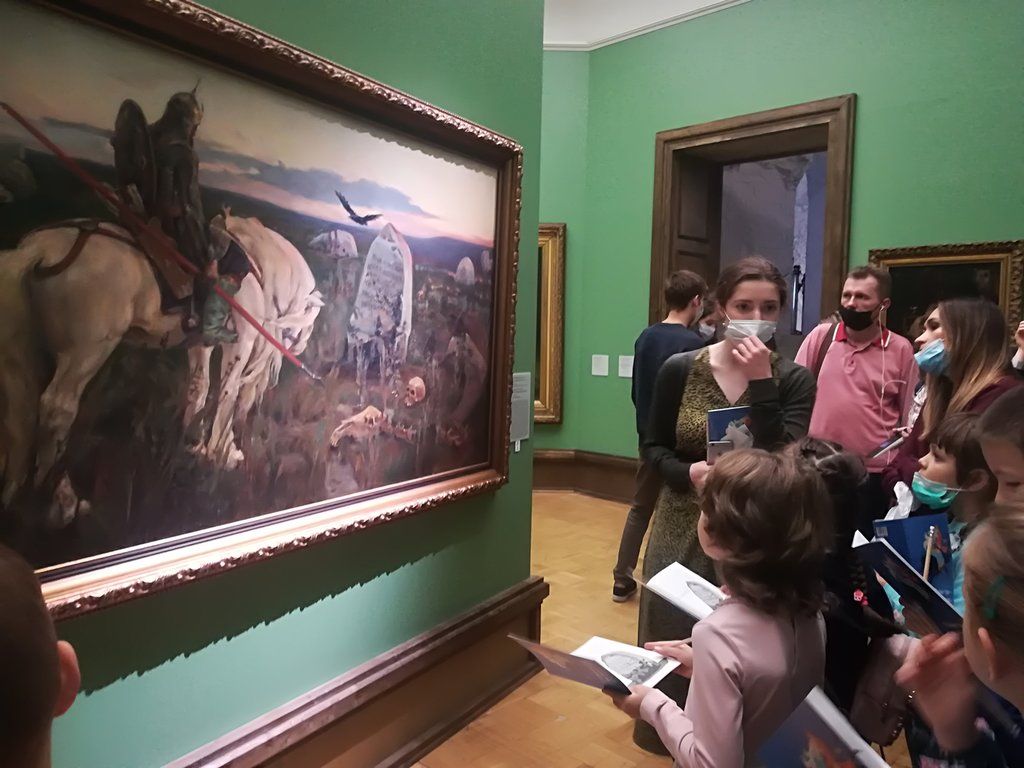 После последнего царства дети снова вернулись к «Витязю на распутье», живыми и невредимыми, где и расстались с экскурсоводом. Аня больше ходить по выставке не захотела. Но сказала, что ей очень понравилось, тем более в школе как раз по чтению сказки изучала.