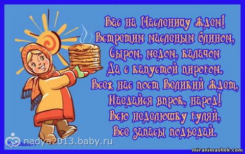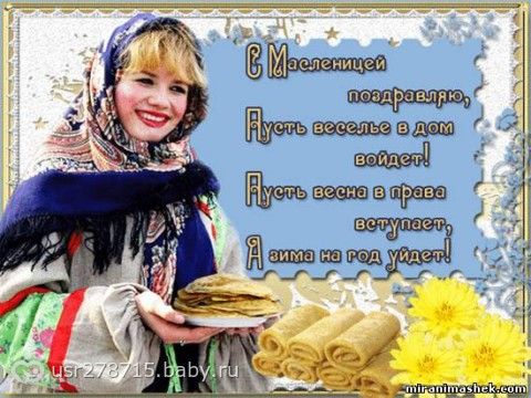 Спасибо да масленная неделя началась! И тебя также поздравляю! Надо бы блины как-нибудь испечь.