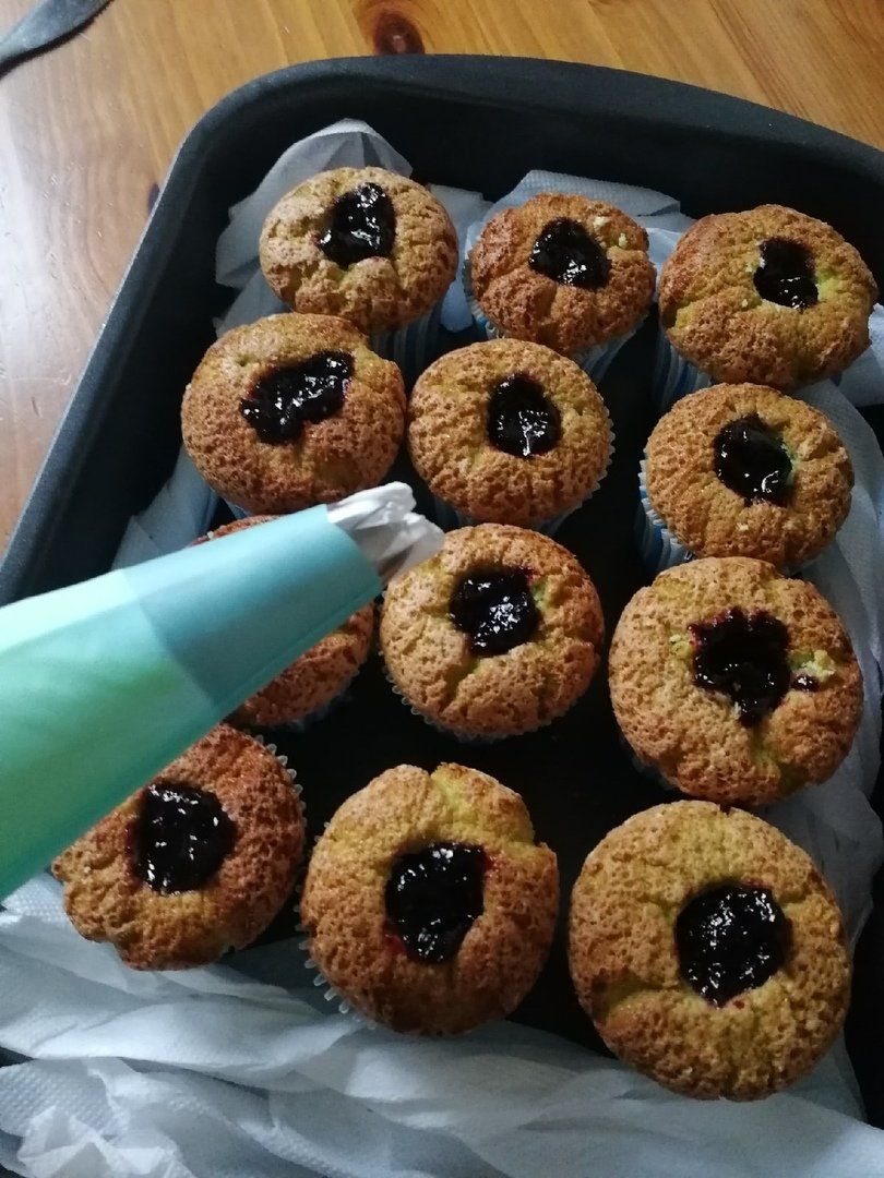 В кексы положила на сей раз чернично-смородиновый конфитюр