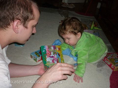 Папа с сыном тут же принялись читать книжку, Матвейке очень понравились яркие картинки