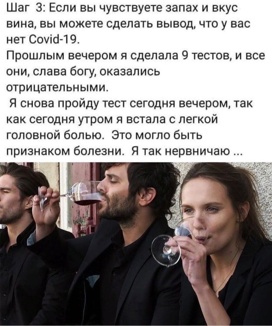 — Я после теста на ковид устала слегка! 10 тестов савиньона пройти это ж как бы уже серьезное вмешательство.