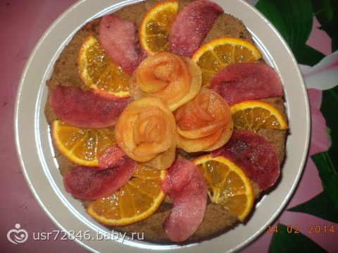 а украшено яблоки порезаны и в сиропе,1:1сахар и вода.а потом сворачивала розочками:))