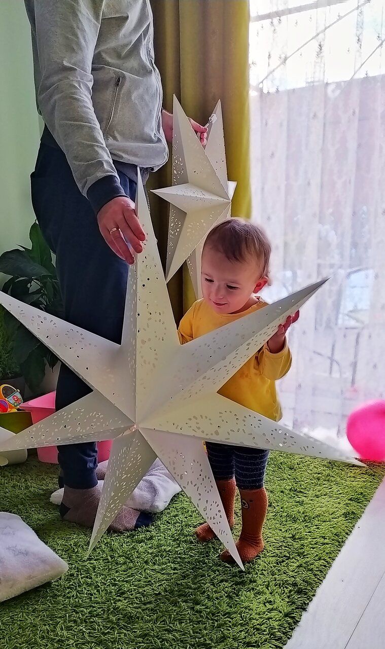 В этом году из -за нашего маленького хулигана елочку мы не будем ставить увы? , так что решили в Икея звездочек накупить и красоту сотворить… и красиво и «никто» не достанет… надеюсь?