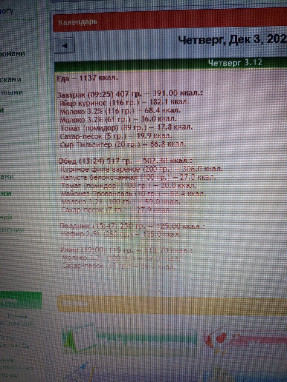 нет, в тел я использую приложение «таблица калорийности»