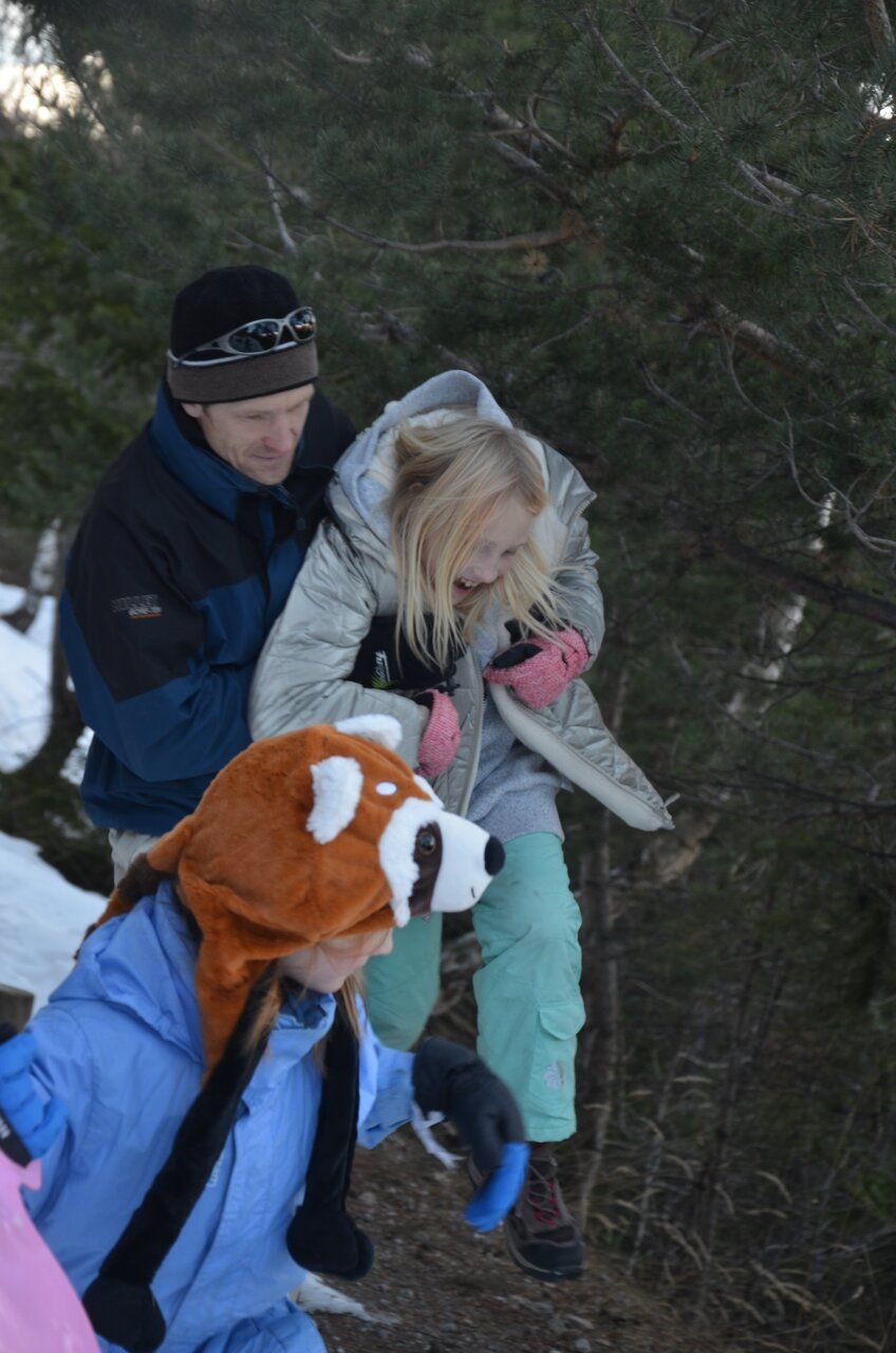 Пока у нас нет карантина( о, ужас, реалии современного мира), мы решили сгонять в Орон, это горнолыжная станция рядом с Ниццей, примерно 60 км от нас. Собирались мы долго. т.к. оказалось, что зимний костюм Жозефин по колено. Она не просто выросла за год, она вымахала. Но её мы засунули в костюм Орели. А Орели-то тоже на месте не осталась. Пришлось как-то всовывать её в прошлогодние зимние брюки. Если не застёгивать, то отлично)))С курткой, к сожалению, так не получилось. Но с верхом легче. Недавно ей заровскую тёплую купили, плюс Пер Ноэль подарил тёплое платье- свитер. Вообще, кое как надели. В магазин на неделе съездим и купим ей одежду по размерчику. Надежда-то на лыжи ещё есть, слабая. Вдруг повезёт и покатается ещё зимой.