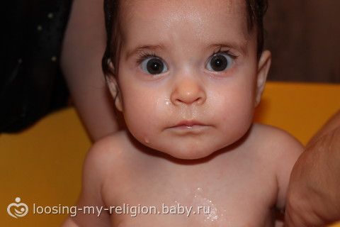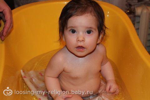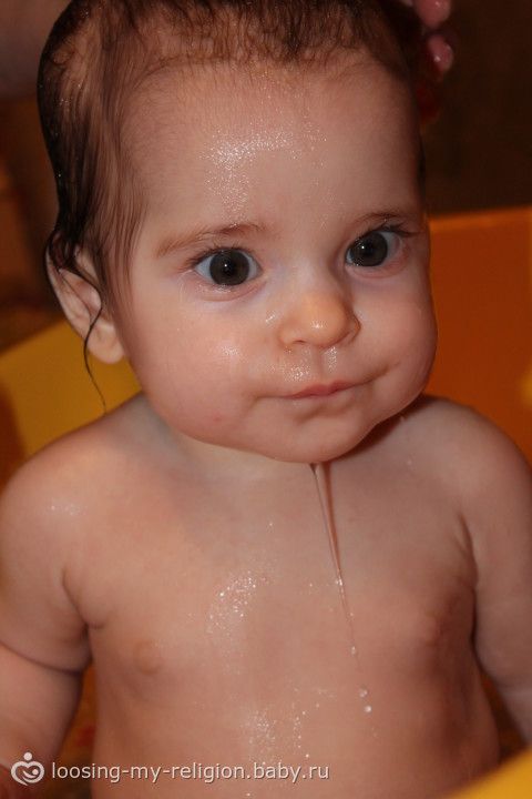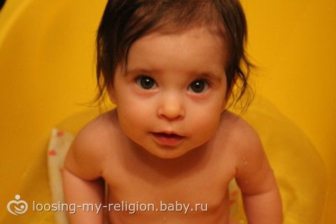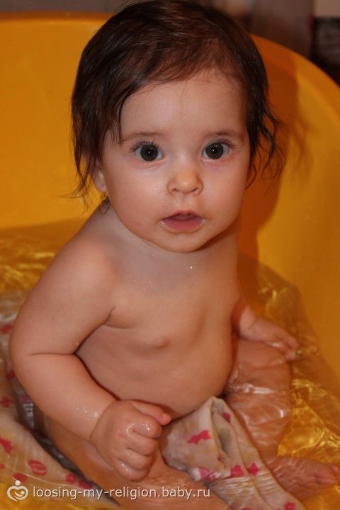 Искупали мою девочку только что, вот ей нравится в воде бултыхаться, правда она там уже сидит и ладошками бьёт по воде, брызги во все стороны!