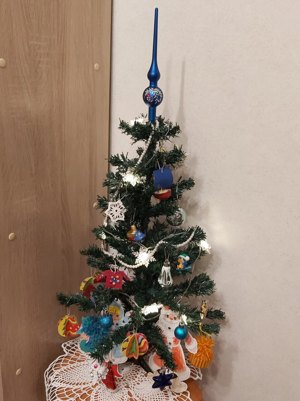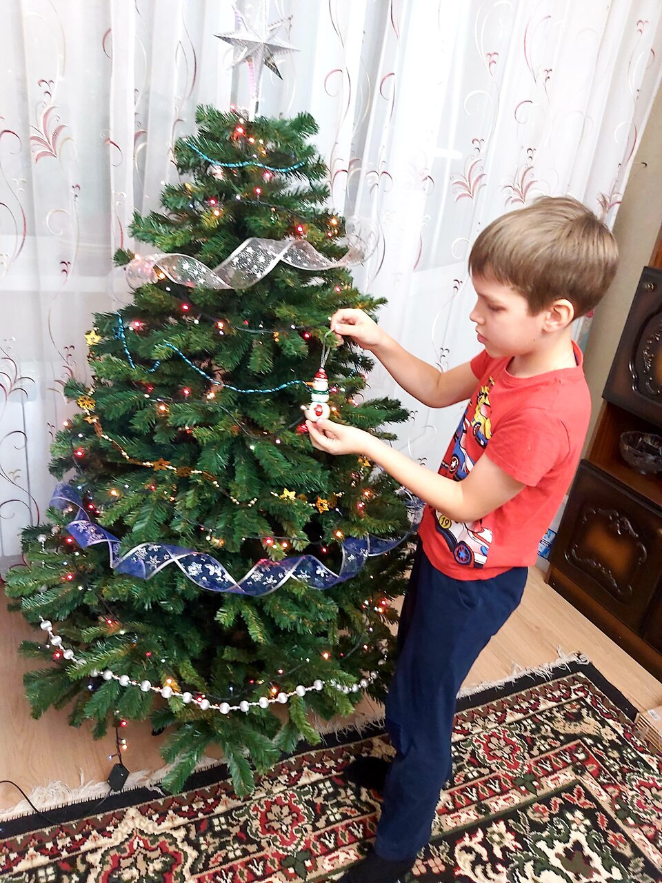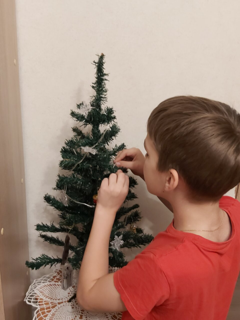 В этот день мы украшали дом. Нарядили ёлку в большой комнате.