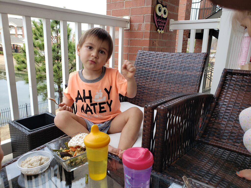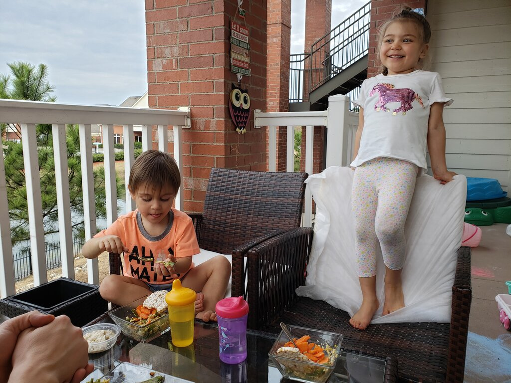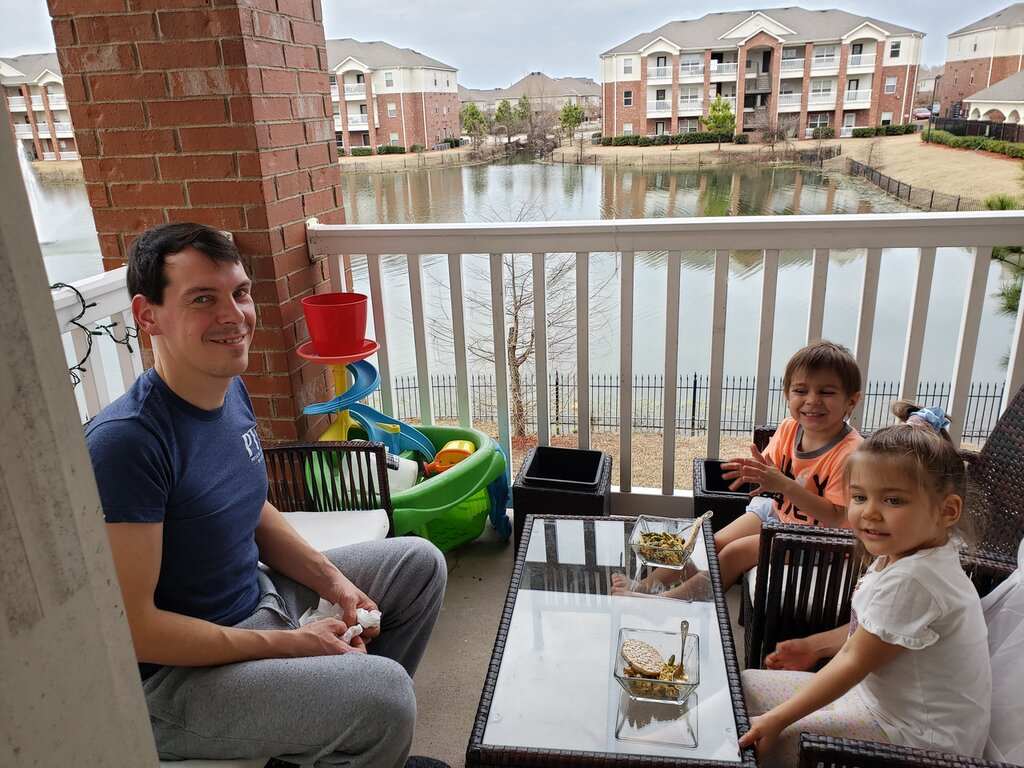 Мы уже вышли ужинать на балкон)