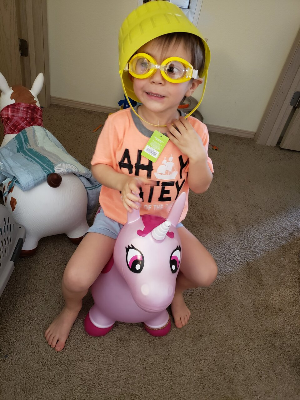 Папа детям купил очки и новые ведерки на лето. Они сразу нарядились) ведра превратились в шлемы ?