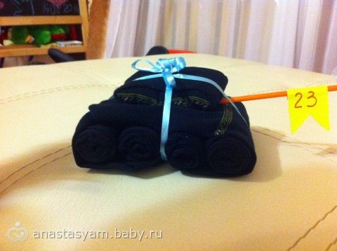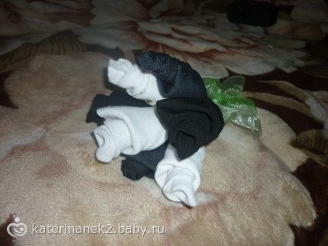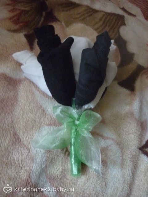 я из трусов и носков сделала букет, без стеблей правда, типа как цветочный горшок получился, ему понравилось, ток носки не носит, потому что светлые взяла