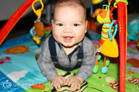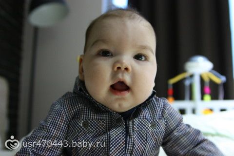 Расскажу немножко о нас, сегодня нам 5 месяцев, моему котеночку, сладкому Мишеньке. Нам 10 кг и 70 см роста, растет мой богатырь, врачи все пытаются посадить нас на диету, но я никого не слушаю, ребенок мой очень активный, позитивный, улыбается, смеется, поворачивается со спины на животик и обратно. Пытается сидеть, очень старается, наверно скоро получится, зубов пока нет, ну и слава богу. Как вспомню, как мучились мы с коликами, сейчас просто наслаждение. Спим все еще вместе, но меня это не расстраивает, спит хорошо, всегда 10 часов, просыпается ночью для кормления пару раз, зато высыпаемся. В 4 месяца поставили прививки полиомиелит и акдс, была один день температура, немного капризничали, но все прошло ттт. Гуляем мы теперь все время почти сидя, совсем не хочет лежать, наверно скоро будем пересаживаться в прогулку. Собираюсь купить стульчик, подскажите какой хороший. Месяц назад купила развивающий коврик, очень нравится, наверно благодаря ему начал крутиться и переворачиваться. Сегодня купила ниблер, положила яблочко, сосал с большим удовольствием.