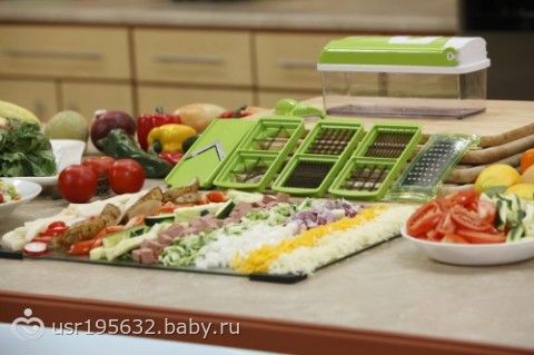 Заказывала маме в подарок Найсер Дайсер Плюс овощерезку, пришла, нам понравилась, салаты так удобно резать
