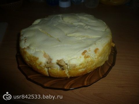 Сын после сна будет кушать )))) Из фруктов — клала порезанные яблоки, грушу, курагу (что было дома), и чуток манки добавила. При выкладывании из чаши мульти немного деформировался. Получилась воздушной!!!
