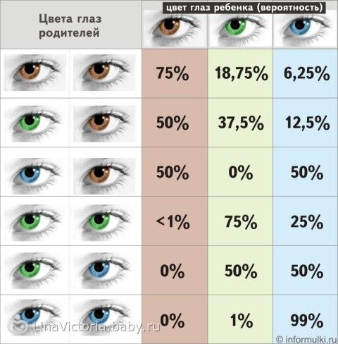 у мужа карие, у меня карие, но с зеленцой. дочка родилась голубоглазая, затем глаза стали ссиня-черные, затем серые, сейчас грязно-зеленые как у вас. или зелеными станут или карими